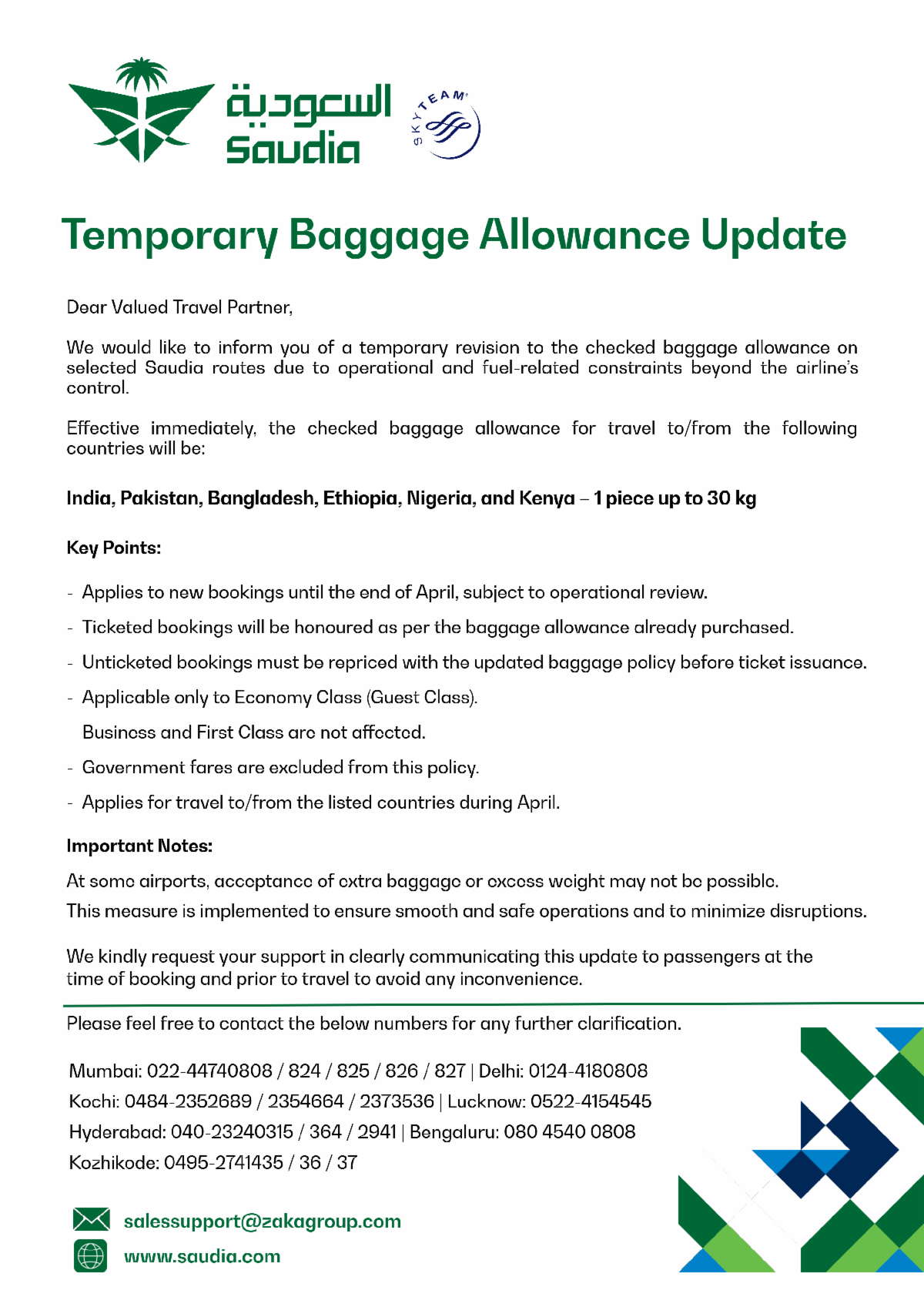 Saudi Airlines- Baggage Policy Update Upanshu Harit March 31, 2026 07:45 Updated Related to Saudi Airlines- Baggage Policy Update Comments 0 comments Please sign in to leave a comment.