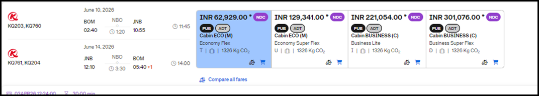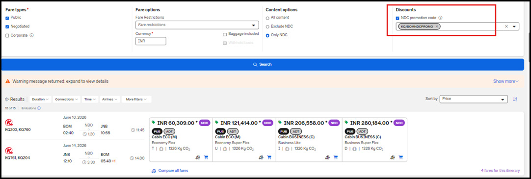 Please refer to the below screenshots for your reference and apply the same for discounted fare on KQ NDC.